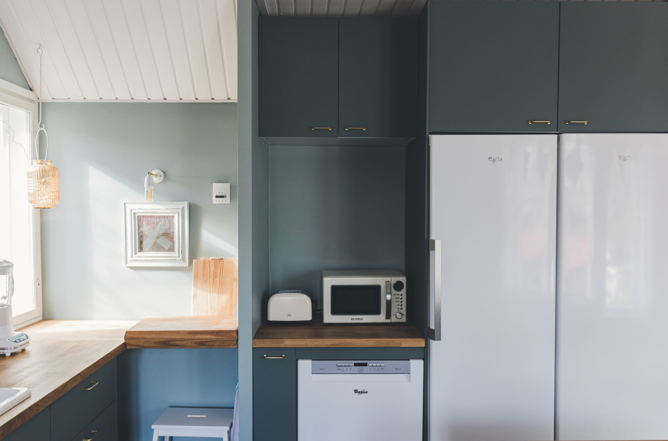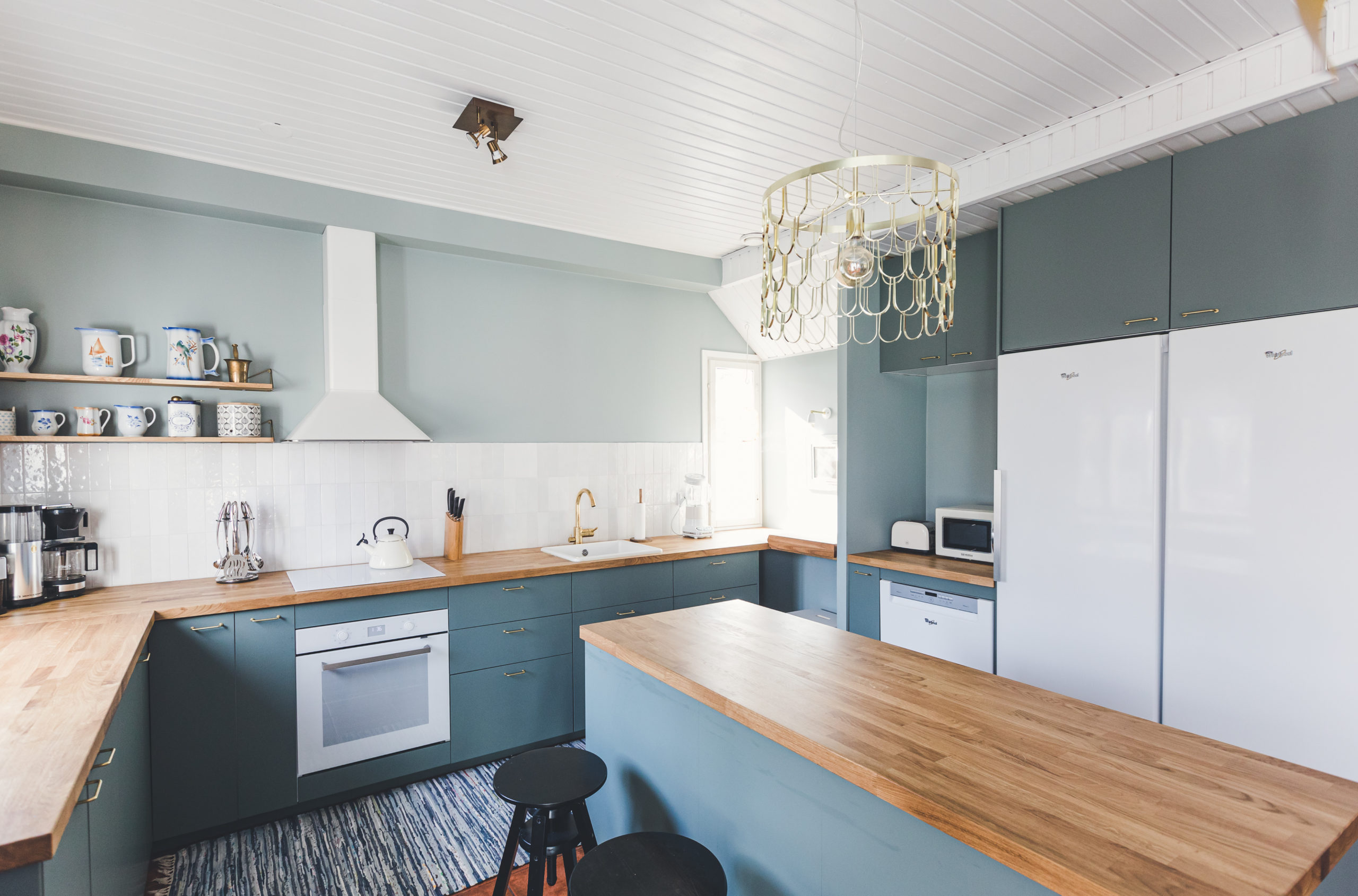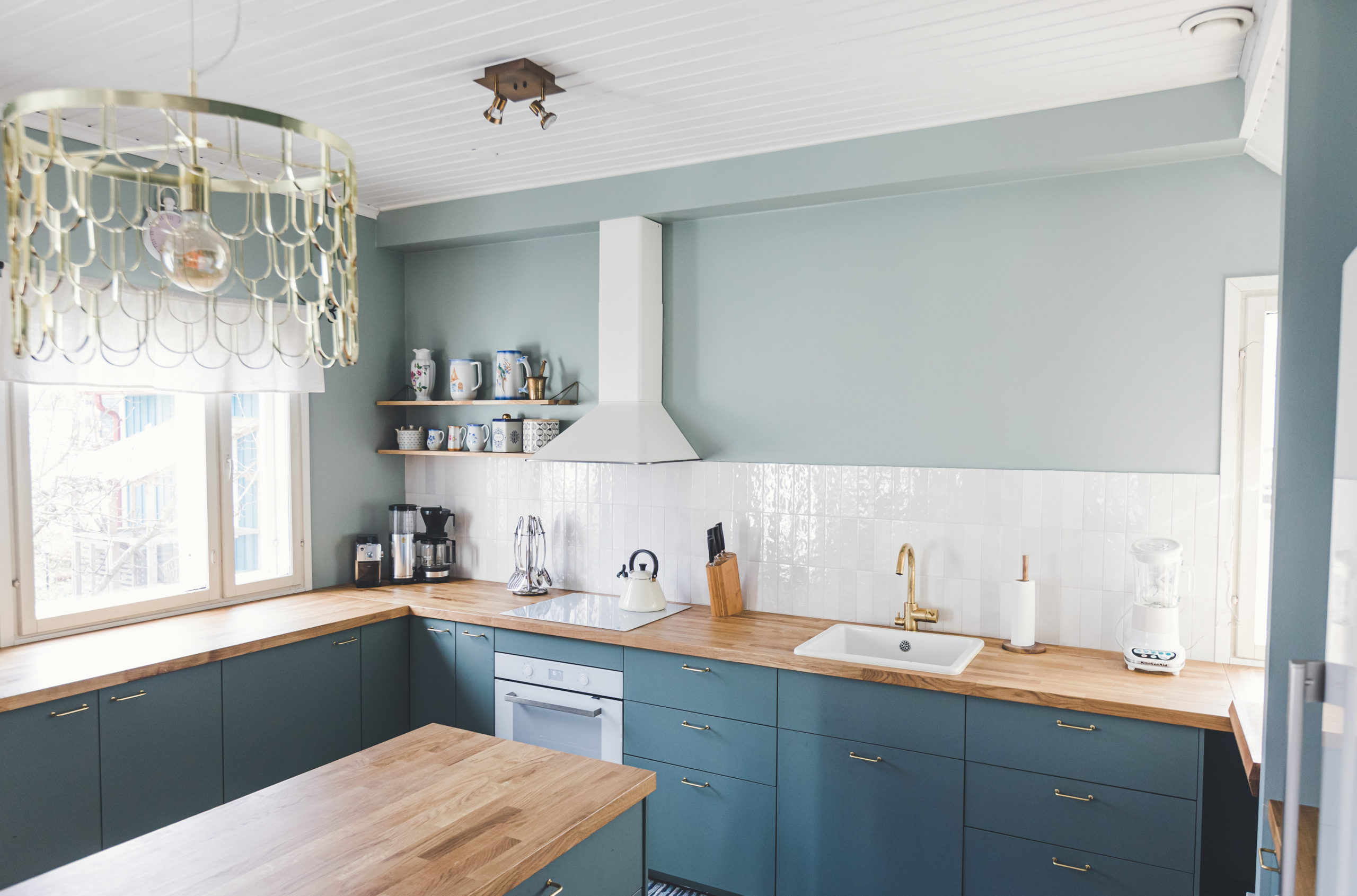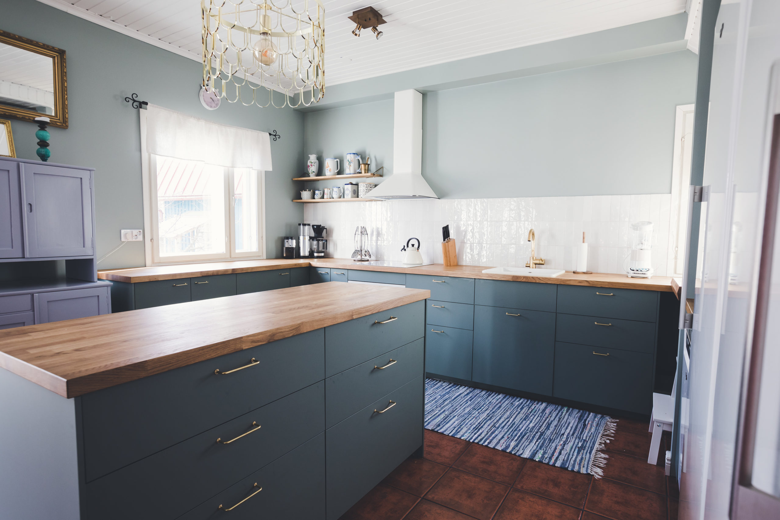 Kitchen filled with love and great memories, but in a need of an update? This was our starting point last fall with my client. Wishes listed: more functionality, warm feeling, space for the whole family & occasional bubbles with friends and space for vintage cupboard. Also not too blingy but some princess-elements needed. How did I do?
