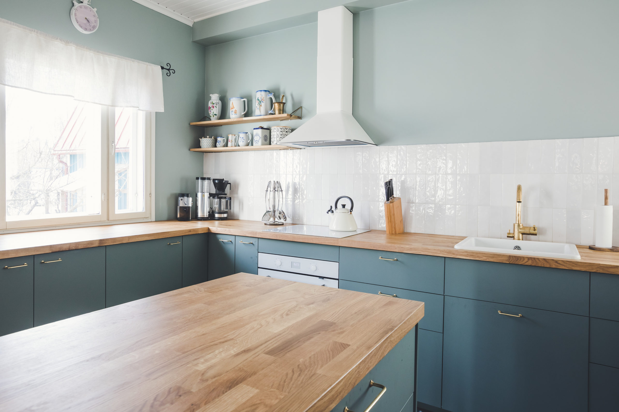 Our kitchen needed a thorough renovation and we were browsing kitchen stores without any clear idea. I contacted Sisse and things started happening! Sisse listened to my vague wishes and drew a plan. It was perfect. We wanted a spacious and functional kitchen where we could invite friends to sit and where there was enough storage space without feeling cramped. The kitchen shines beautifully in the heart of the home, and the color scheme is so harmonious that the other rooms have become almost unnecessary.