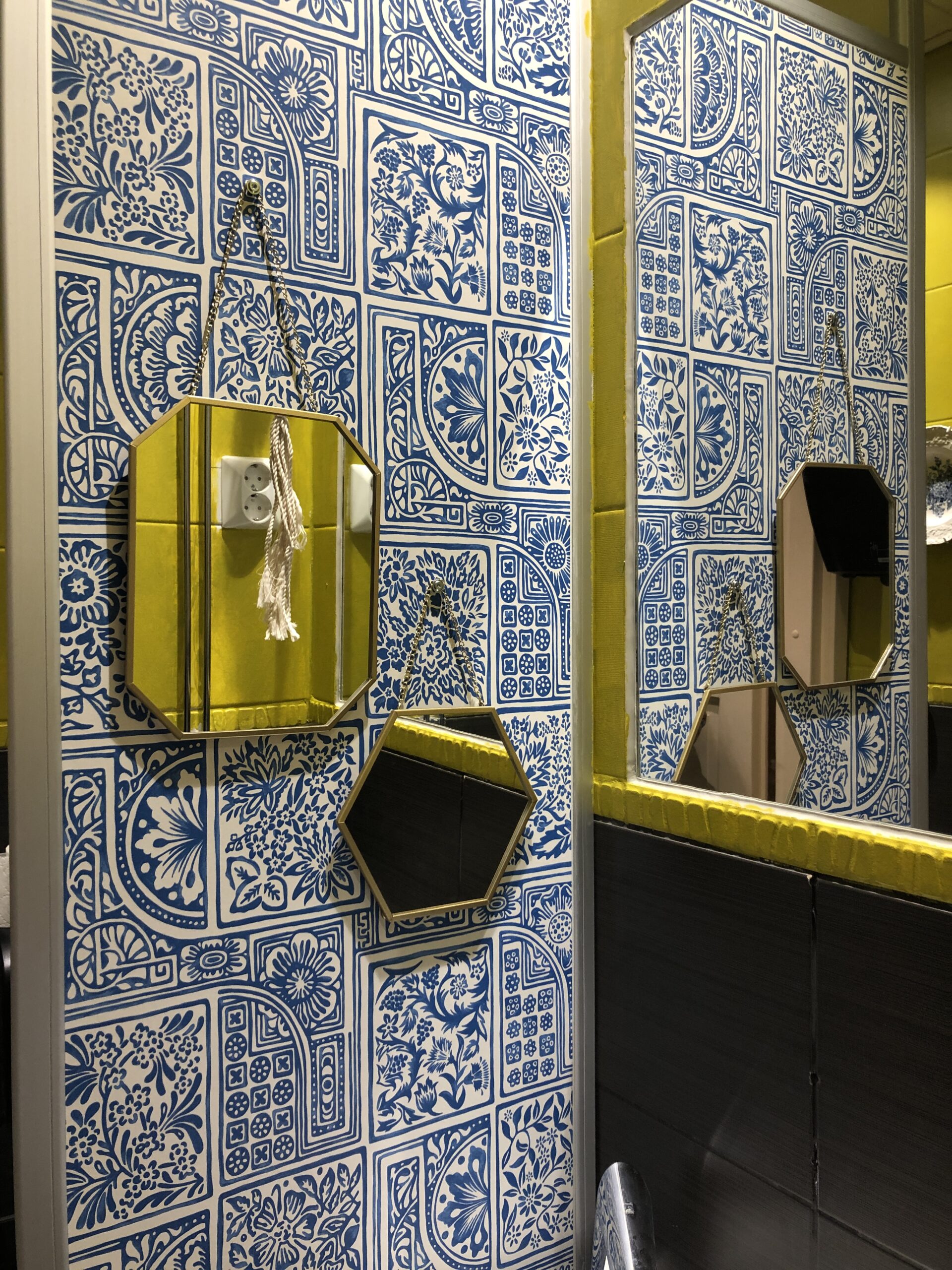 These ideas were taken as the starting point for the design, and the goal was also to use as much recycled material and custom-made furniture as possible – Mexican atmosphere colored with Finnish craftsmanship and a Levi twist! The tiles for the bar counter eventually traveled in the same truck as the drink taps, and otherwise, we tried to utilize travelers going long distances for help. Some of the restaurant’s chairs were bought used from another restaurant, and originally, the chairs served at Lohja Seurahuone in the 40s. The brass railings of the booth were created by the skilled hands of the restaurateurs. Sisse conceived these railings from an old brass bed headboard.