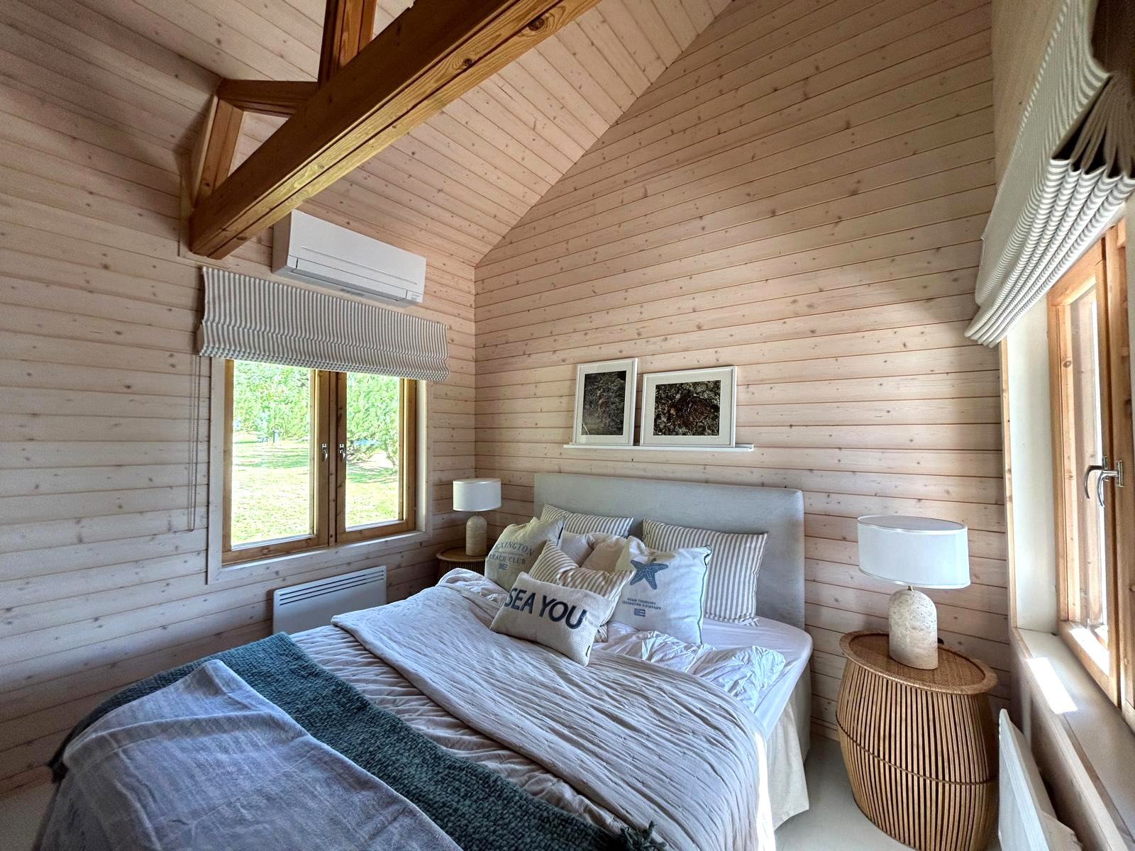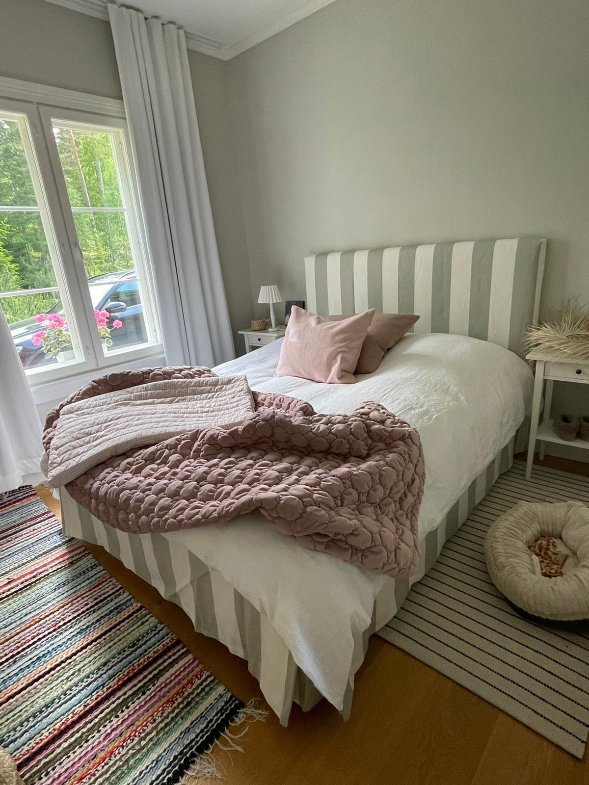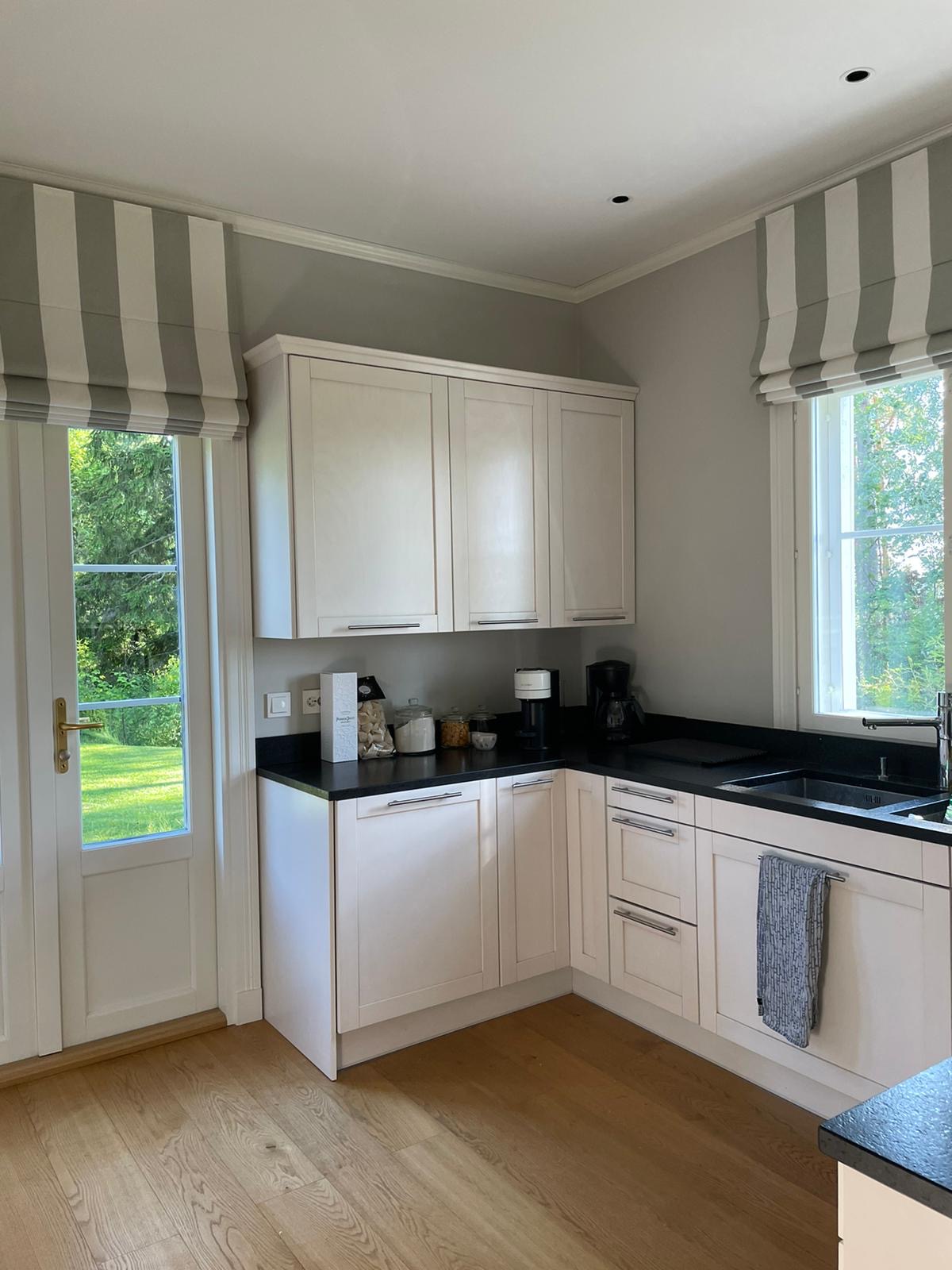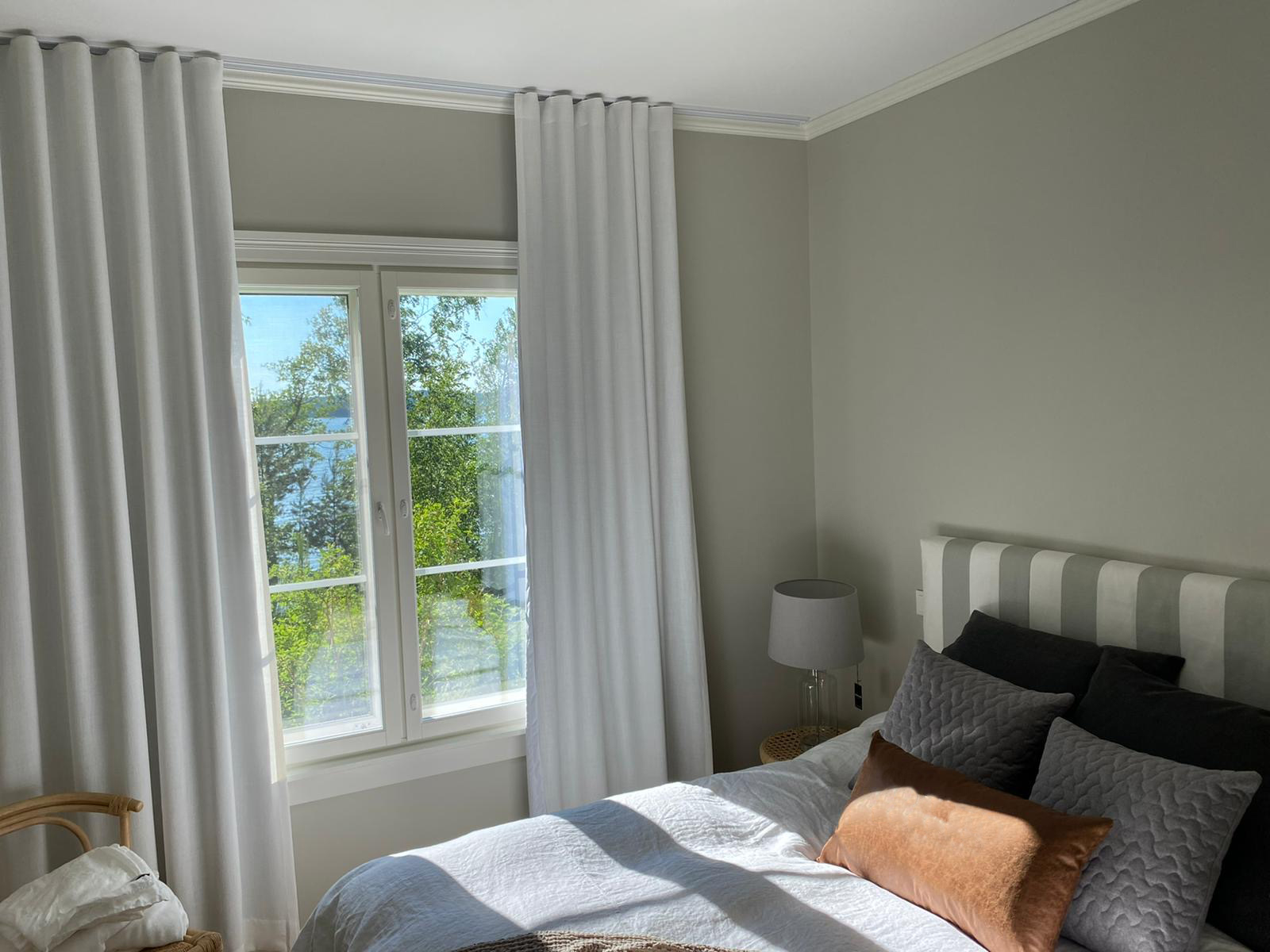 Kun työmatkaan sisältyy lossi, tietää jo siitä että perillä odottaa jotain erityistä. vuosien 2021-2023 aikana ajelin ahkerasti erilaisissa keleissä kohti tätä rantaparatiisia, jossa tunsi verenpaineen laskevan heti pihaan kääntyessä. Asiakkaan toiveissa oli päivittää ryhdikästä huvilaa kohti Hamptonsia, pienellä twistillä. Talo on itsessään upea, hienosti ja huolellisesti rakennettu ja suunniteltu. Sitä päivitettiin tuulessa heiluvilla verhoilla, kutsuvilla vuodetekstiileillä ja kepeillä kalusteilla. Tekstiileiden toteutuksesta vastasi jälleen taitava Susanna Ridosta. Osa kalusteista löydettiin lähiseudun kirppiksiltä, ja näin saatiin tunnelma säilymään kotoisana. Asiakkaan itse löytämä taulu huipensi kepeän kesäfiiliksen.