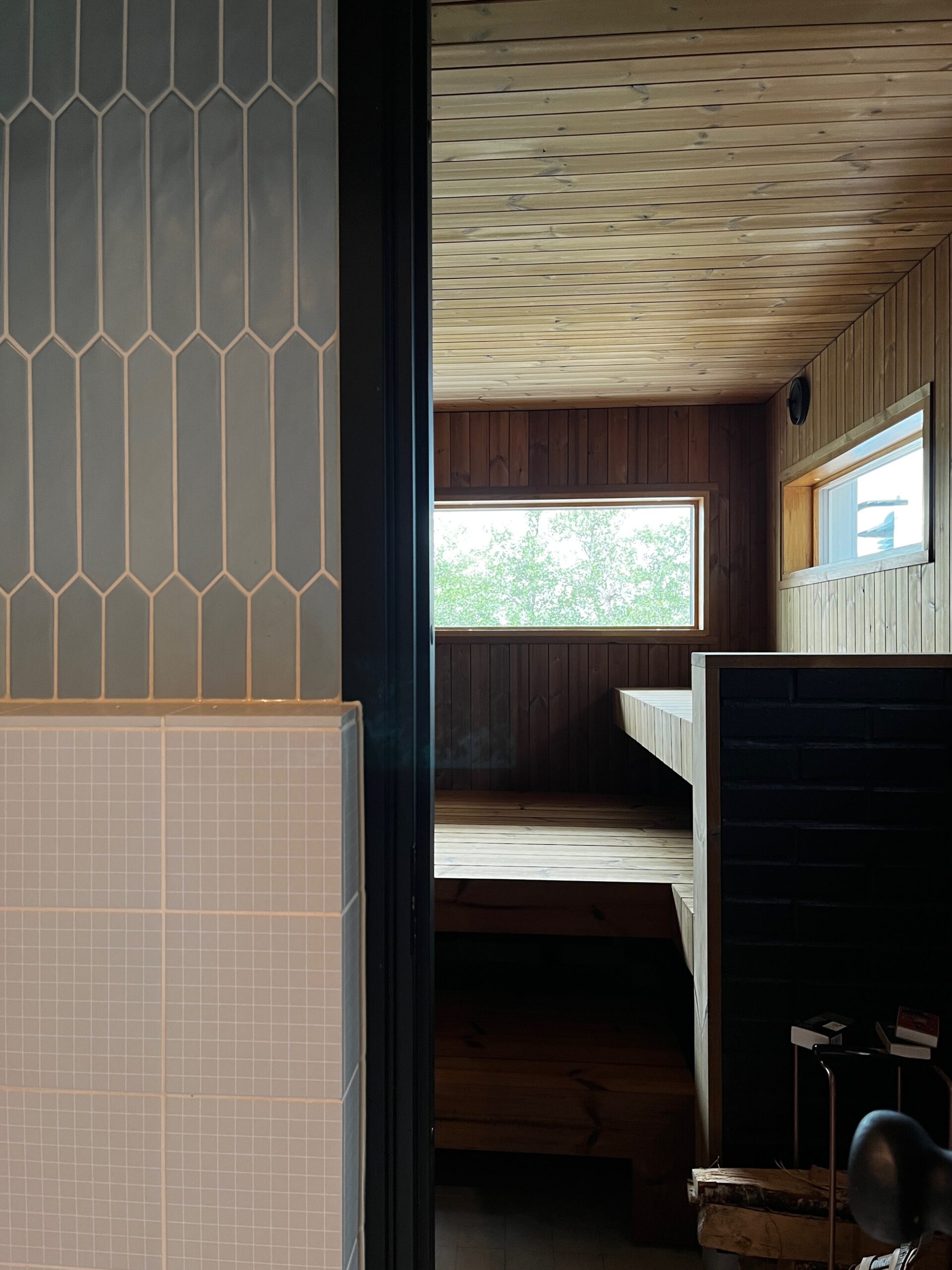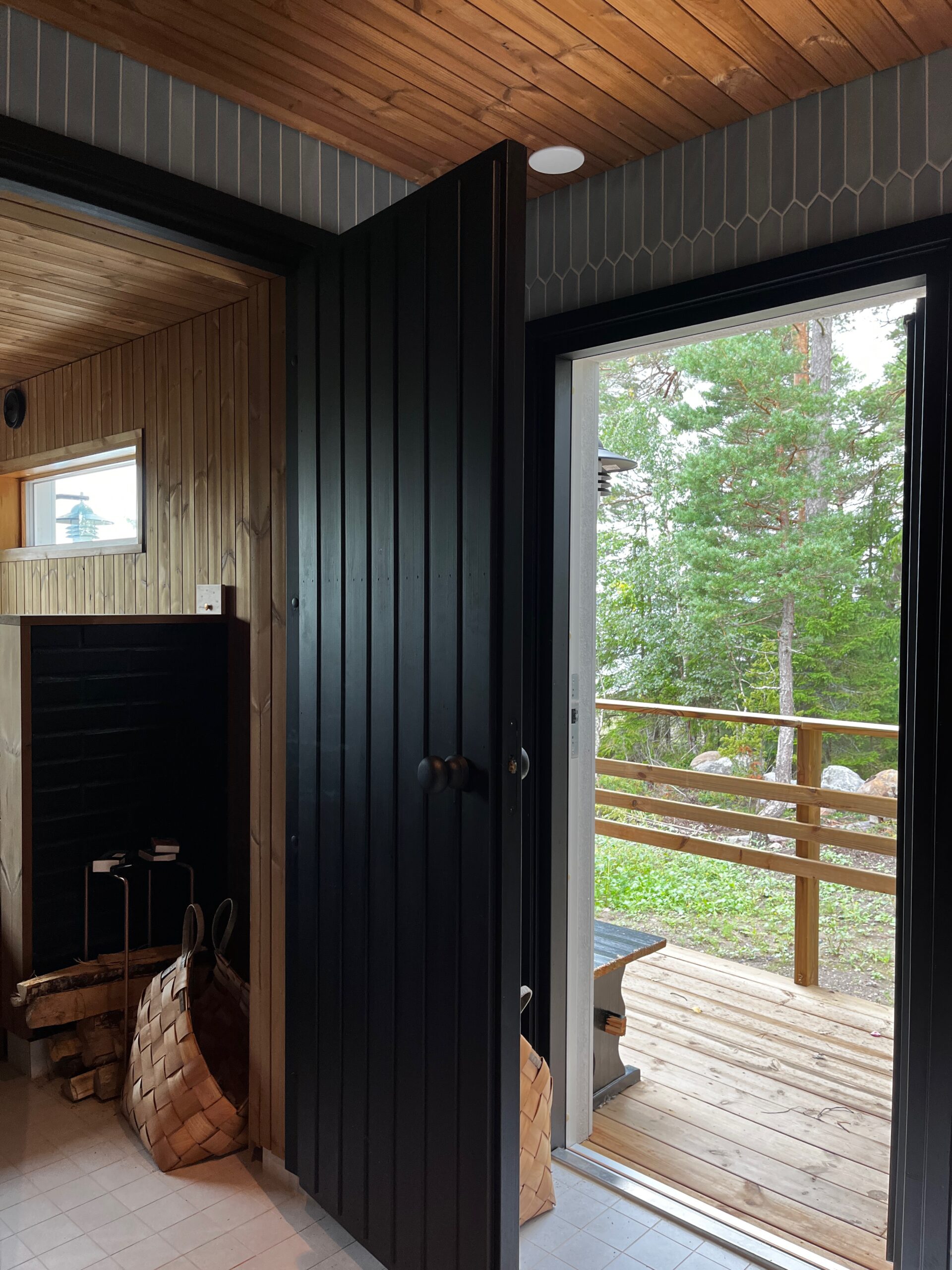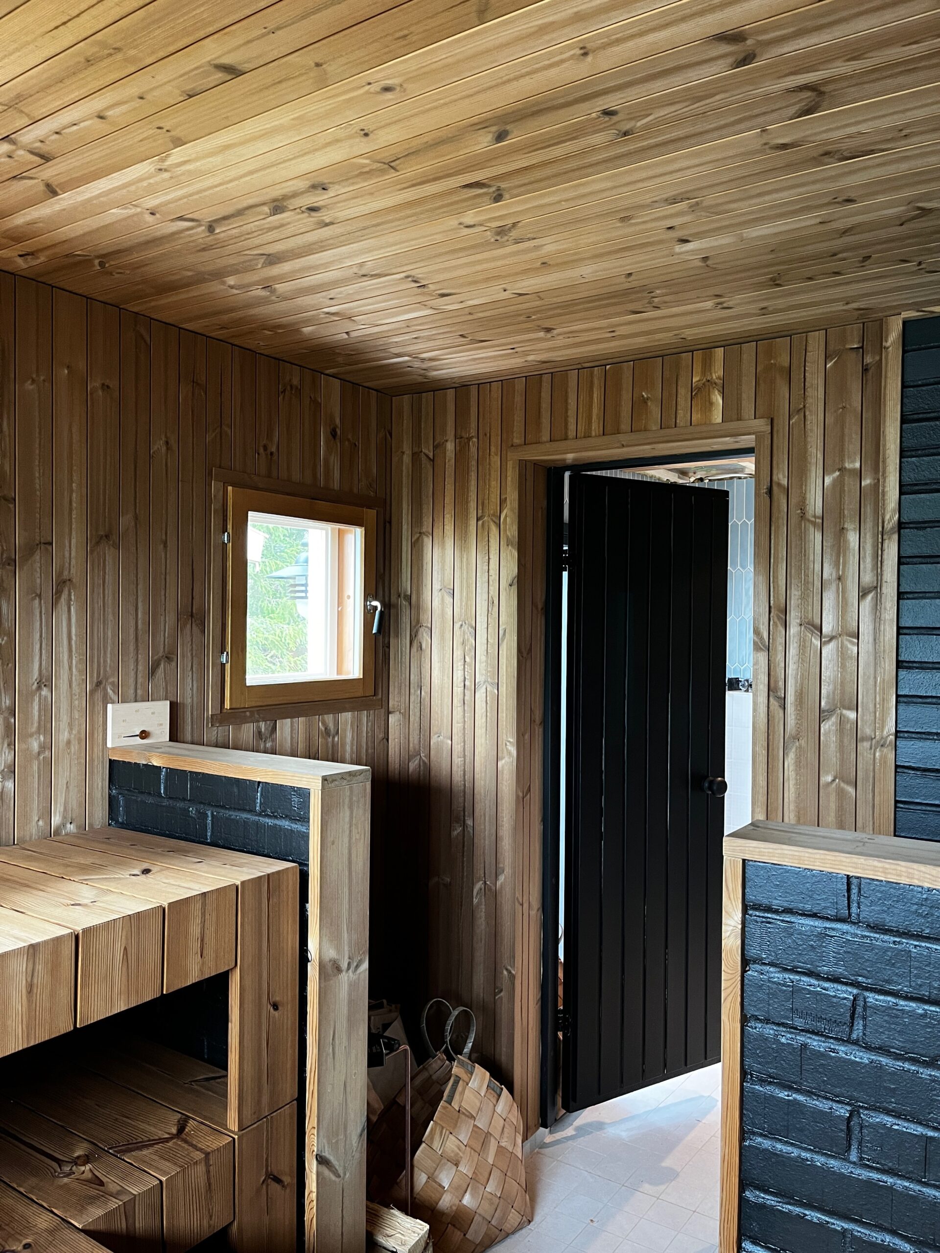 Seuraavaksi pureuduttiin lokaalein apuvoimin rantasaunan ja sen tuvan päivitykseen. Ulkoväriksi valittiin musta, ja sisältä tupaa raikastettiin vaaleilla sävyillä ja pesuhuonetta yhdistelemällä erilaisia laattoja. Saunassa luotin jälleen Saunamanagerin lämpömäntyyn, johon olen ihastunut jo monessa projektissa. Vanhasta saunarakennuksesta saatiin kuin uusi, taitavan toteutuksen ja monen mutkan jälkeen.