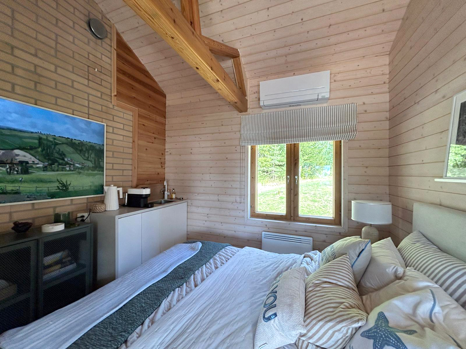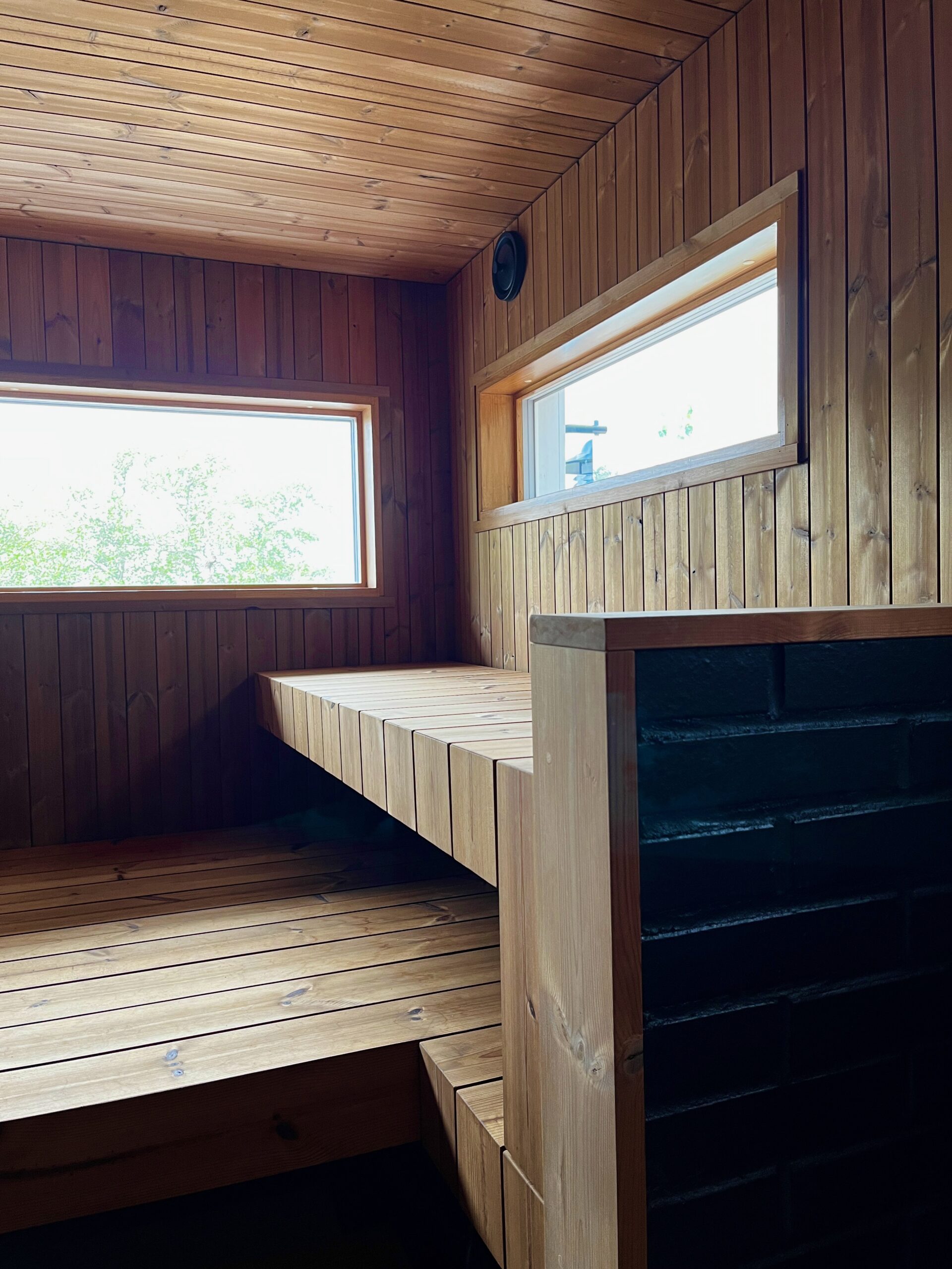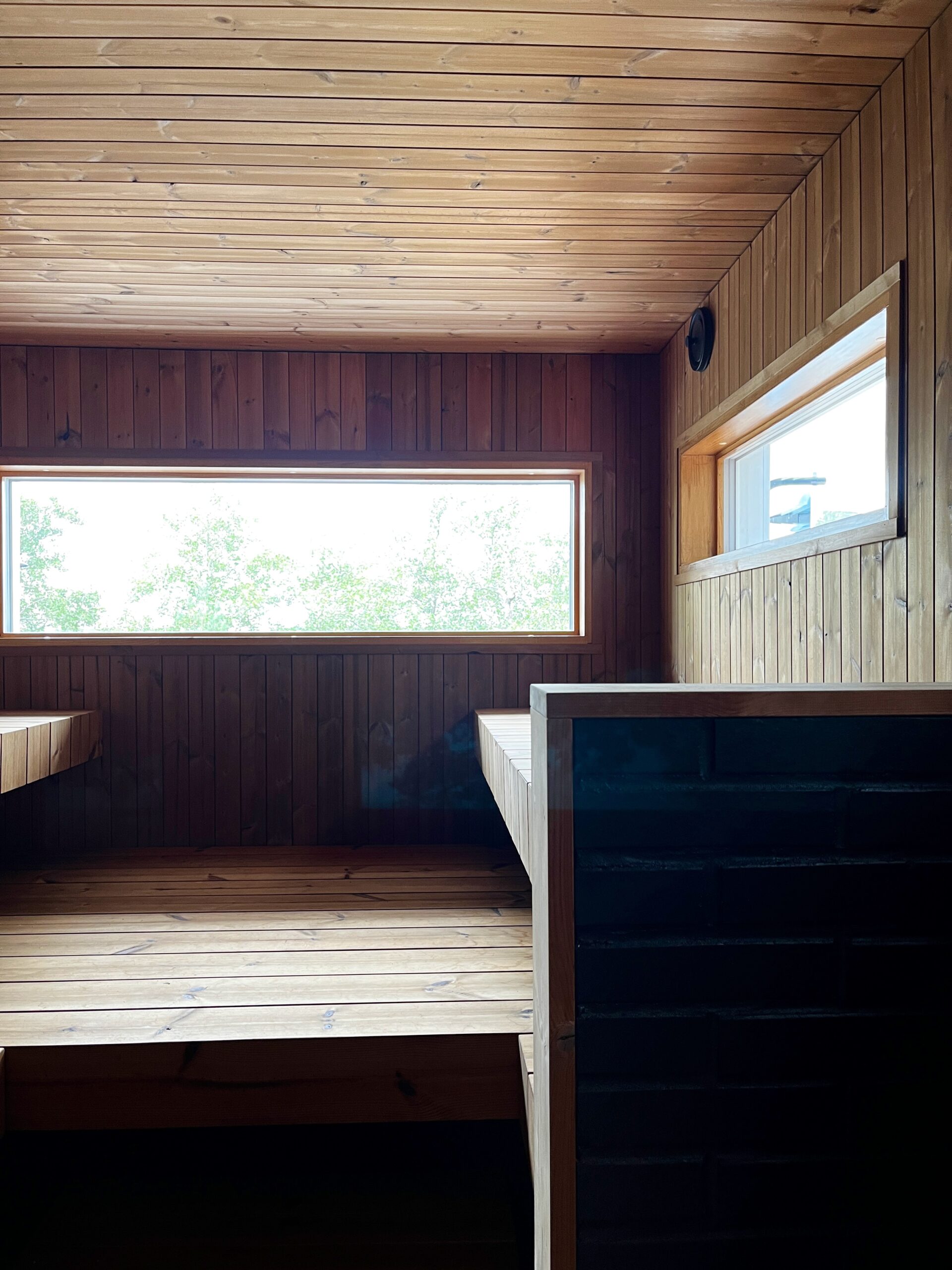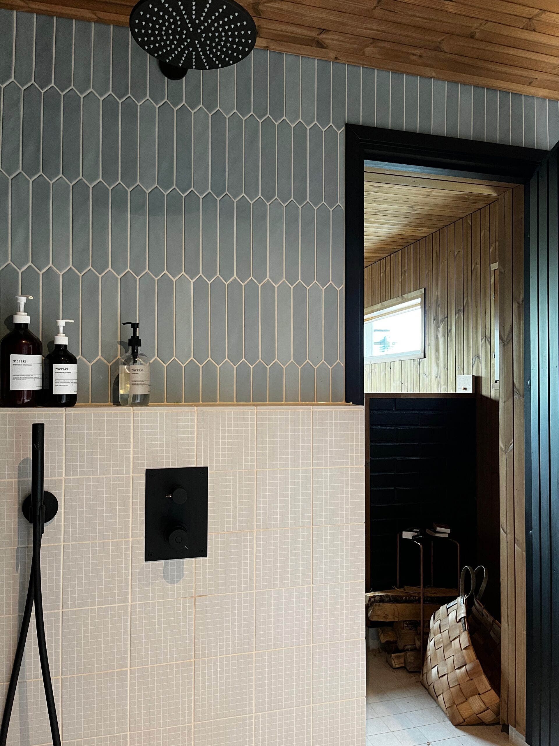 Seuraavaksi pureuduttiin lokaalein apuvoimin rantasaunan ja sen tuvan päivitykseen. Ulkoväriksi valittiin musta, ja sisältä tupaa raikastettiin vaaleilla sävyillä ja pesuhuonetta yhdistelemällä erilaisia laattoja. Saunassa luotin jälleen Saunamanagerin lämpömäntyyn, johon olen ihastunut jo monessa projektissa. Vanhasta saunarakennuksesta saatiin kuin uusi, taitavan toteutuksen ja monen mutkan jälkeen.