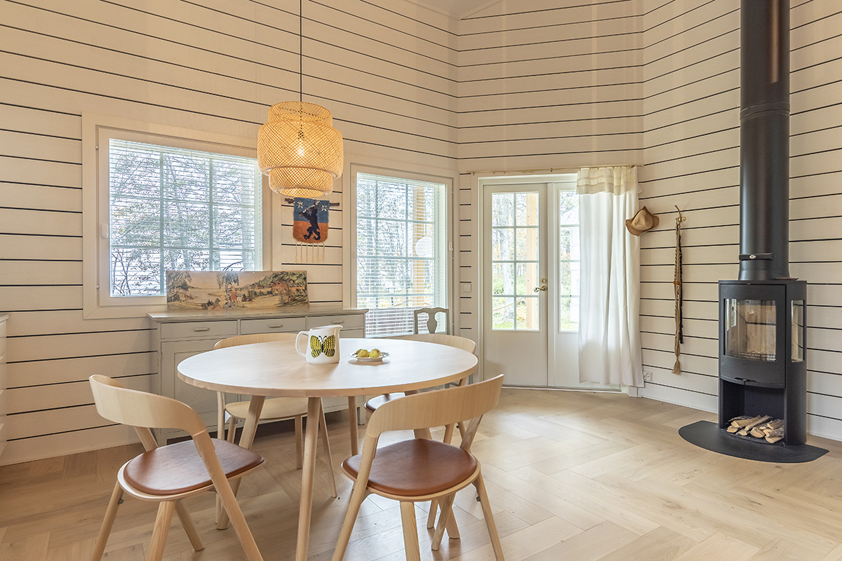 Rauhallinen ja lämmin linnoitus Suomen luonnon sydämessä. Villa Kyllikki on 61 neliömetrin kokoinen saunamökki, jonka Sisse on suunnitellut alusta alkaen. Luonnonmateriaaleja, ripaus vanhaa ja kodikasta, käsintehtyä ja pehmeästi värjättyä. Villa Kyllikki isännöi monia ikimuistoisia lomia ja raclette-iltoja, mutta sen katon alla on jo useita tarinoita: monet materiaaleista on nähty aiemmin Habitare Trendi -näyttely Signalsissa. Osa huonekaluista on isovanhemmilta tai vanhemmilta, osa käsintehty juuri Villa Kyllikille.