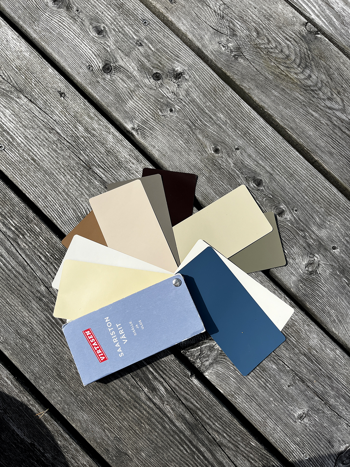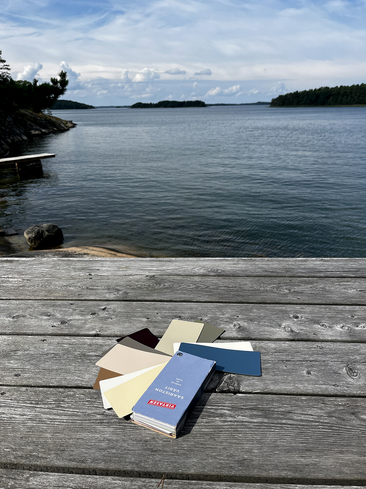 Täysin suomalaiset, muovittomat maalit. Saaristosta inspiroituneet sävyt. Siinä briiffi Virtasen tiimiltä Habitare-osaston luomiselle. Otin Virtasen väriviuhkan käteen, ja painelin saaristoon pohtimaan, mitkä sävyistä inspiroivat juuri nyt. Naapurin, Innoluxin käyttämä Virtasen Lyökki-sininen määritteli osittain valikoimastani rauhallisen. Vaniljan, sorbetin ja auringonlämmittämän kellertävät vaaleat ovat inspiroineet jo hetken, niiden pariksi löysin kallioiden sammalista poimittuja sävyjä. Pohdin myös sitä, miten sävyt saavat uuden roolin erilaisilla pinnoilla – ja sudin suosikkisävyni erilaisiin kirpputorilöytöihin. Miten esineen muoto tulee eri tavalla esiin, kun sen maalasi yhdellä värillä. Ja miten rinnastamalla sävyt erilaisten parien kanssa, jokaisesta tuli uusi puoli. Teen sitä usein kotona ja työhuoneella, siirrän asian toiseen paikkaan, jonkun toisen kaveriksi saamaan uutta perspektiiviä.