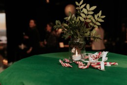 Helsingin Kaapelitehtaalla sijaitseva Teatterimuseo tarjosi puitteet Visit Finlandin JouluJuhlasille. Teatterimuseo tarjosi todella vain puitteet, sillä Kelkkaprojektin sisustus hurmasi meidät kaikki tilan jouluisella tunnelmalla. Jo sisään tullessa punavihreät ilmapallot toivottivat vieraat tervetulleiksi. Kaikki pienetkin yksityiskohdat oli mietitty kuten aina. Vieraat saivat lukea punavihreisiin kääröihin kirjoitettuja ajatelmia, jouluinen tunnelma välittyi kuvista, fiiliksestä ja kaikesta siitä, mitä Sisse ja Heidi olivat jälleen keksineet ja luoneet.